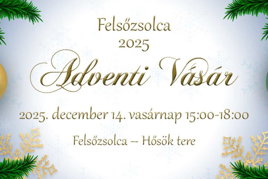 December 14-én vasárnap a Hősök terén Adventi Vásár várja az érdeklődőket, melyet az önkormányzat szervez. A vásár 15 órakor kezdődik, ahol zene, mézeskalács, meleg tea és forralt bor gondoskodik a karácsonyi hangulatról. Idén közel 10 kézműves kiállító lesz jelen, akiktől karácsonyi ajándékokat, dekorációkat is vásárolhatnak majd a kilátogatók, akik a helyi Szent József Görögkatolikus Óvoda és Bölcsőde mellett, az SMS Állatvédő Egyesületet is támogathatják vásárlásukkal.