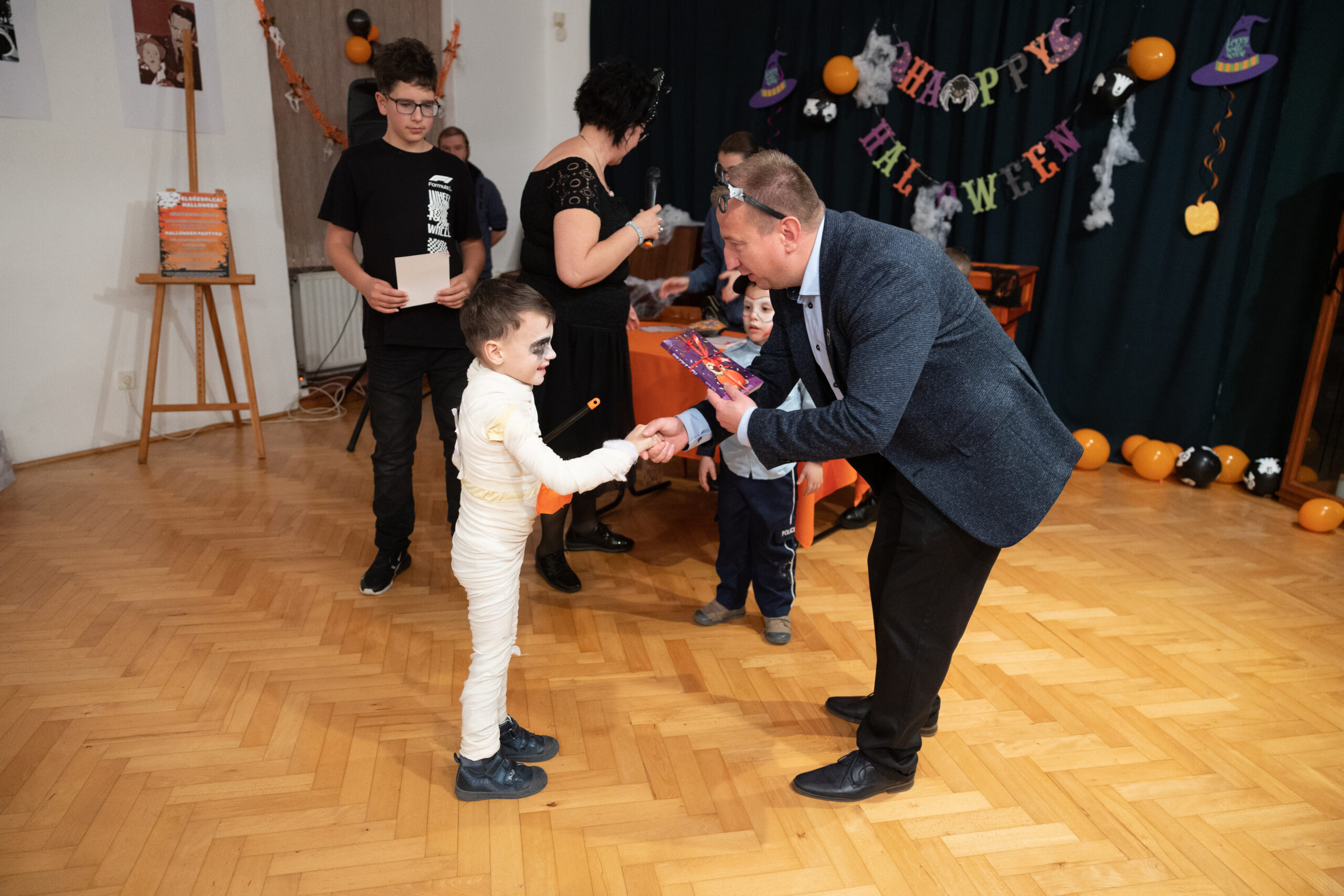 Az este folyamán a 6-13 éves korosztályú gyerekeket a már évek óta megrendezésre kerülő közkedvelt Halloween Party várta, mely során a résztvevők megismerkedtek a magyarországi tökfaragás, illetve a Halloween eredetével és történetével, más népek szokásaival. Majd ezt követően az este legizgalmasabb része következett, amikor a gyerekek bemutatták a jelmezeiket. Ötletes, rémisztő jelmezekkel érkeztek, amit diákokból álló háromtagú zsűri értékelt, majd a legötletesebb, legkreatívabb, illetve a közönség szavazatát elnyerő jelmezeket díjazták. A rendezvény programjából nem hiányozhatott a csoki keresés. Amíg a gyerekek cukorkát, csokoládét kerestek, a szülők a Szörnyen jó kézműveskedésen elkészíthették őszi dekorációikat. Otthonukat ez alkalommal egy saját készítésű kopogtatóval és egy asztaldísszel varázsolhatták szebbé. 19 órától Szellemes lámpás felvonulás indult a Bárczay-kastélytól a Hősök teréig. Itt közösen megtekintették a Töklámpás kiállítást, amelyet a Felsőzsolcai Napközi Otthonos Óvoda és Bölcsődében meghirdetett tökfaragó versenyre érkezett alkotásokból állítottak össze. A tökfaragás ma már sokak számára a Halloween elengedhetetlen része, de kevesen tudják, hogy ez a szokás Magyarországon sem teljesen új keletű. A régi falusi gyerekek már a múlt században is szívesen faragtak lámpást a nagy, narancssárga sütőtökökből. A kivájt tökbe gyertyát tettek, és a világító fejet gyakran tréfából az ablakba vagy a kerítésoszlopra rakták – ezzel ijesztgették a járókelőket, vagy épp próbálták elűzni a rossz szellemeket. A modern tökfaragás az 1990-es években, a Halloween elterjedésével kapott új lendületet. Azóta egyre többen készítenek kreatív lámpásokat az őszi esték díszéül.