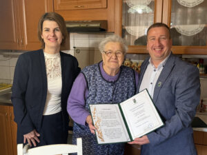 Családja körében köszöntötte 95. születésnapja alkalmából városunk szépkorú polgárát, Borbély Bertalannét Szarka Tamás polgármester és dr. Ispán Csilla jegyző.