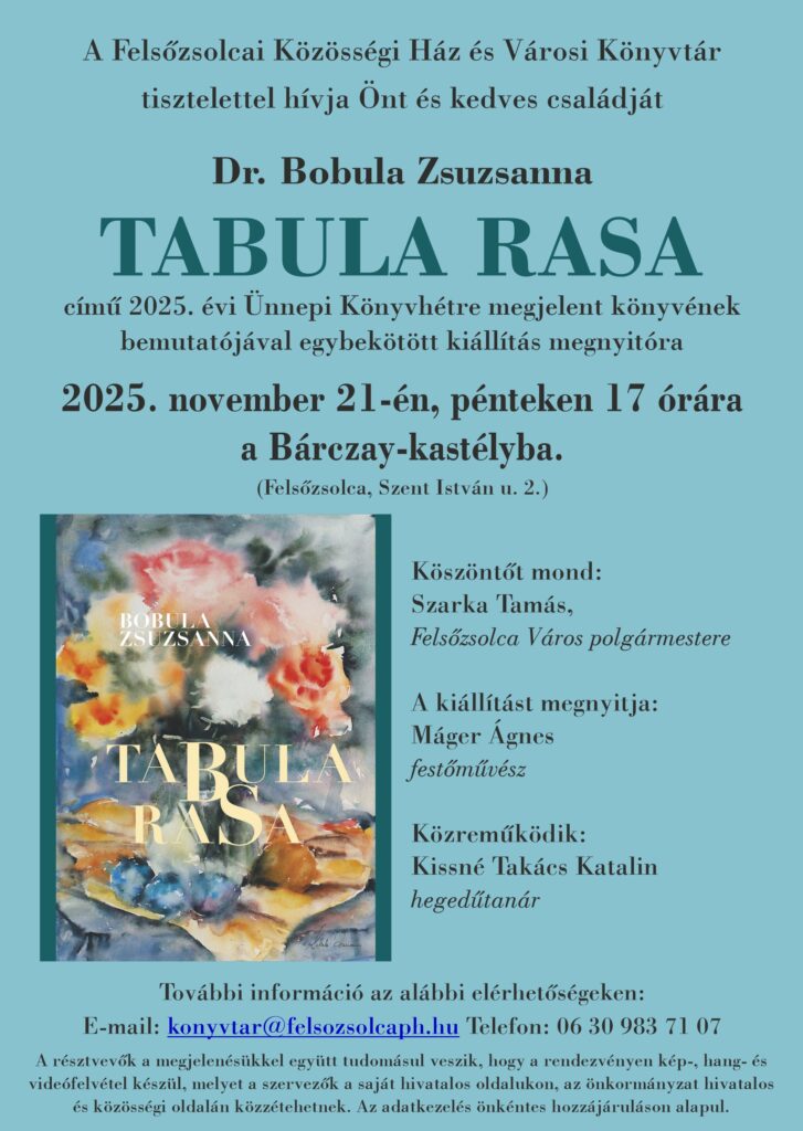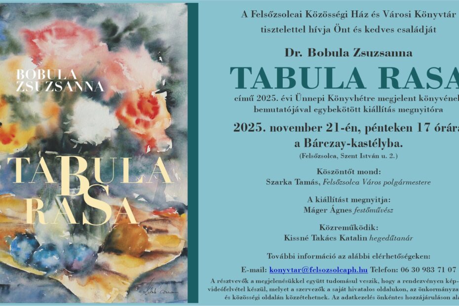 Az esemény különleges kulturális élményt kínál, hiszen a festészeti album bemutatóját kiállításmegnyitó is kíséri, amely betekintést enged a művész alkotói világába és festménysorozatába. A kiállítást Máger Ágnes festőművész nyitja meg, a vendégeket pedig Szarka Tamás, Felsőzsolca Város polgármestere köszönti. Az est hangulatát Kissné Takács Katalin hegedűtanár zenei közreműködése teszi még emlékezetesebbé.